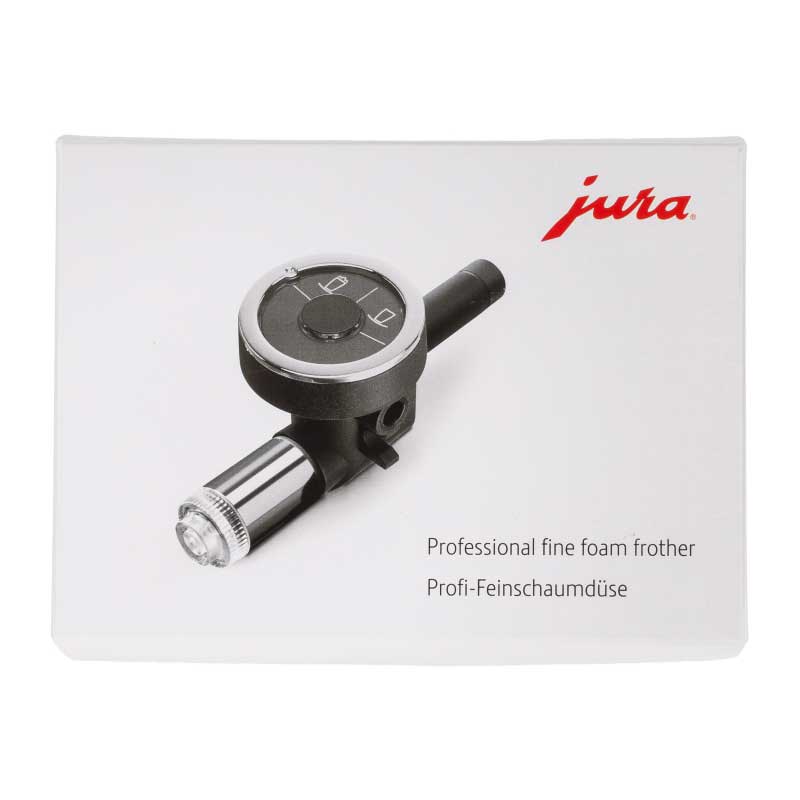 Profi kapučinátor Jura - originální balení profi kapučinátoru Jura včetně příslušenství a čistící vodičky na mléčné cesty. Balení obsahuje kompletní kapučinátor, náhradní hadičku včetně spojky, náhradní směšovač vzduchu, 3ks koncovky trysky